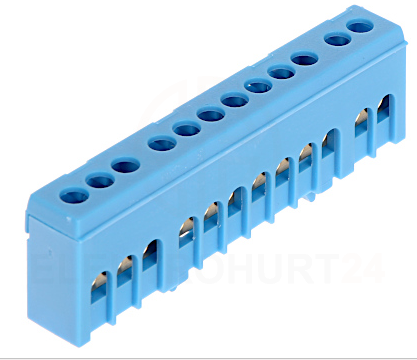 Listwa zerowa izolowana 12-modułowa niebieska LZB-