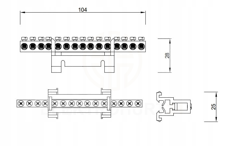 Listwa zaciskowa stosowana w rozdzielnicach elektrycznych, montowana na szynie TH35