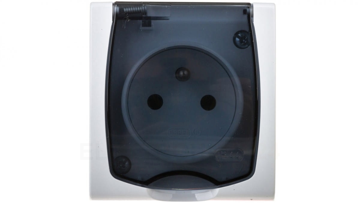 MADERA Gniazdo hermetyczne pojedyncze z/u IP44 klapka przezroczysta biała GNH-1NZ/00/d