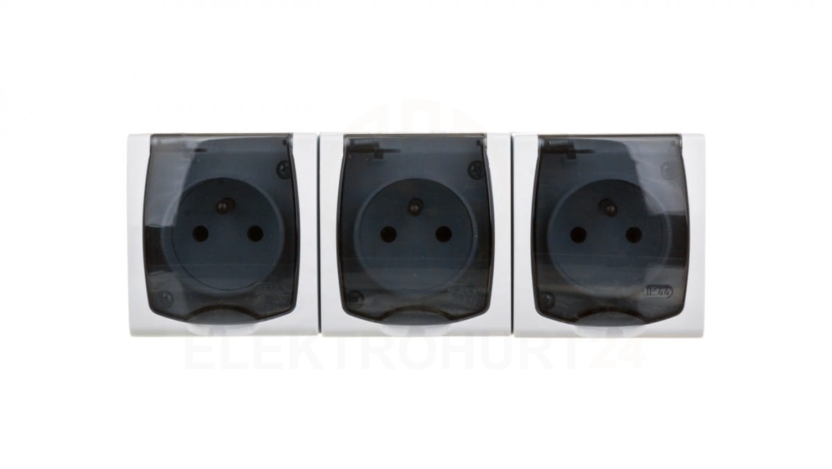 MADERA Gniazdo hermetyczne potrójne z/u IP44 klapka przezroczysta białe GNH-3NZ/00/d