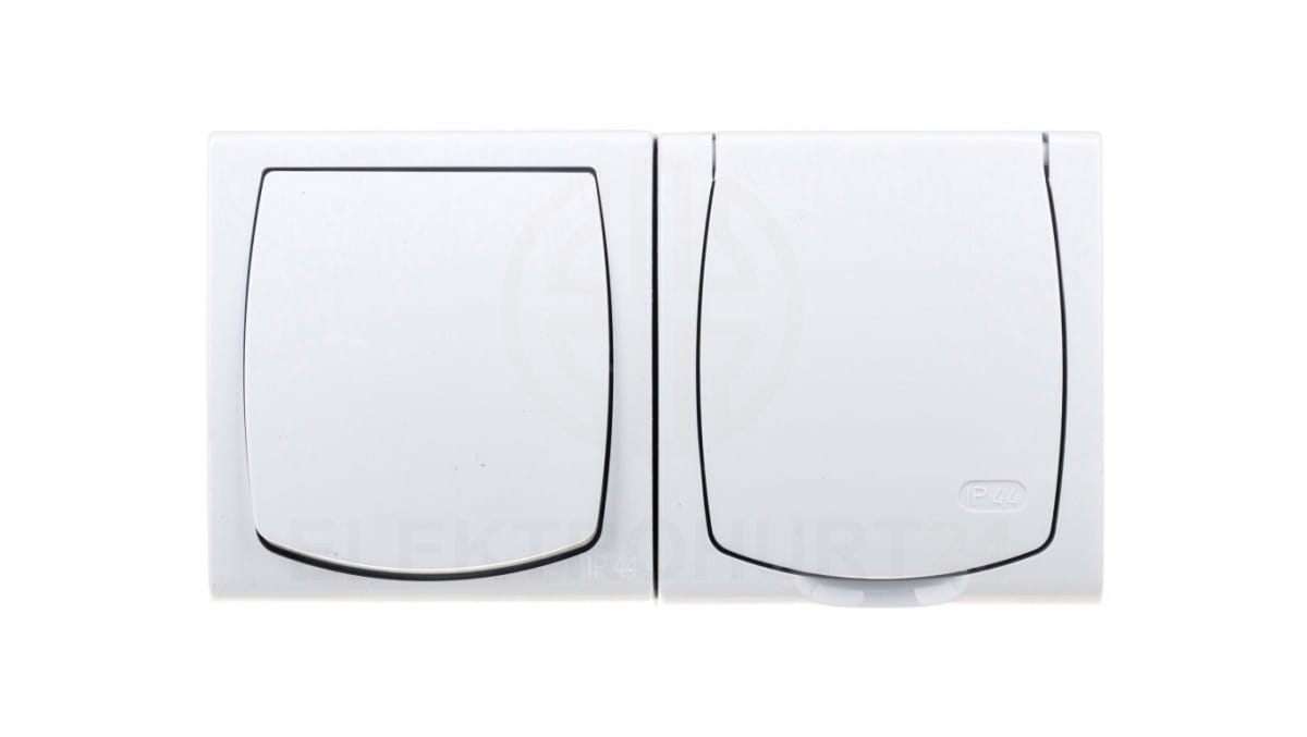 MADERA Łącznik hermetyczny pojedynczy + gniazdo hermetyczne pojedyncze z/u z klapką biały ZH-NŁ1G/00/w