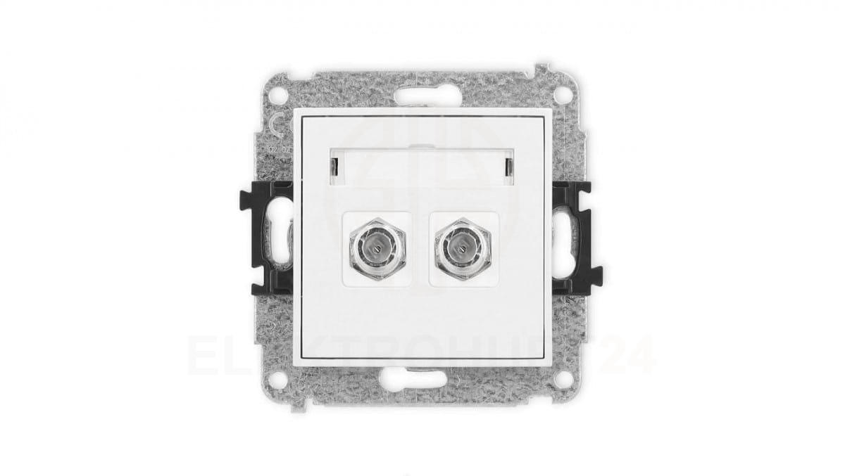 MINI Mechanizm gniazda antenowego podwójnego typu F (SAT) niklowany biały mat 25MGF-2