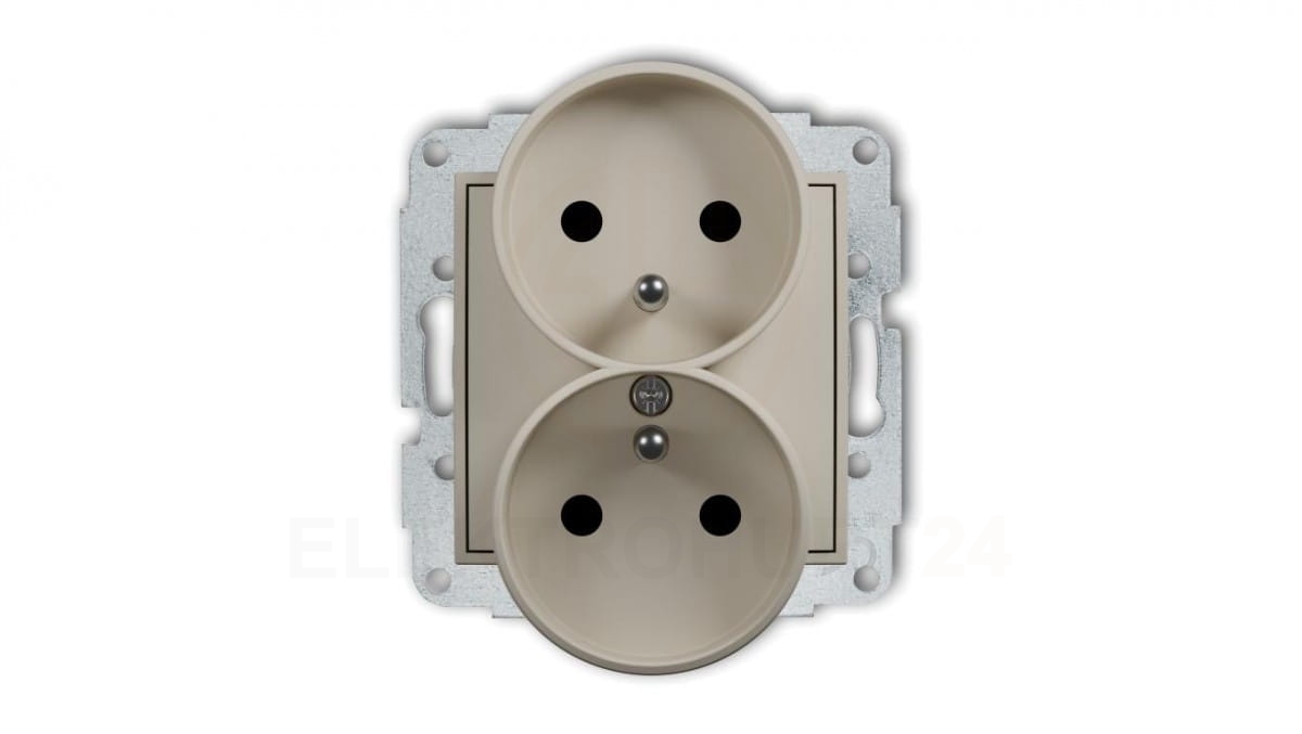 MINI Mechanizm gniazda podwójnego do ramki z uziemieniem 2x(2P+Z) (przesłony torów prądowych) taupe 60MGPR-2zp