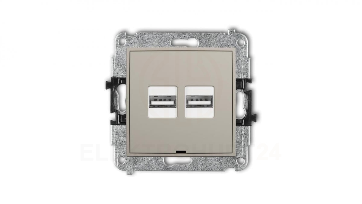 MINI Mechanizm ładowarki USB podwójnej 2xUSB A, 15,5W max., 5V, 3.1A, bez pola opisowego taupe 60MCUSBBO-6
