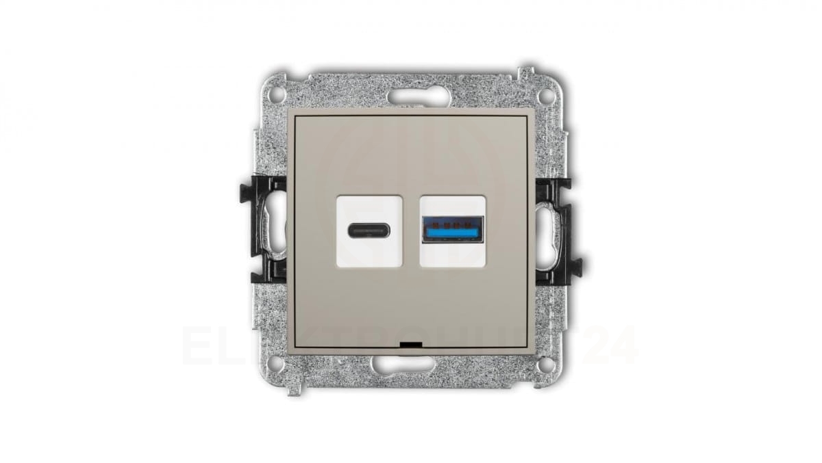 MINI Mechanizm ładowarki USB podwójnej USB C + USB A, 20W max., bez pola opisowego taupe 60MCUSBBO-8