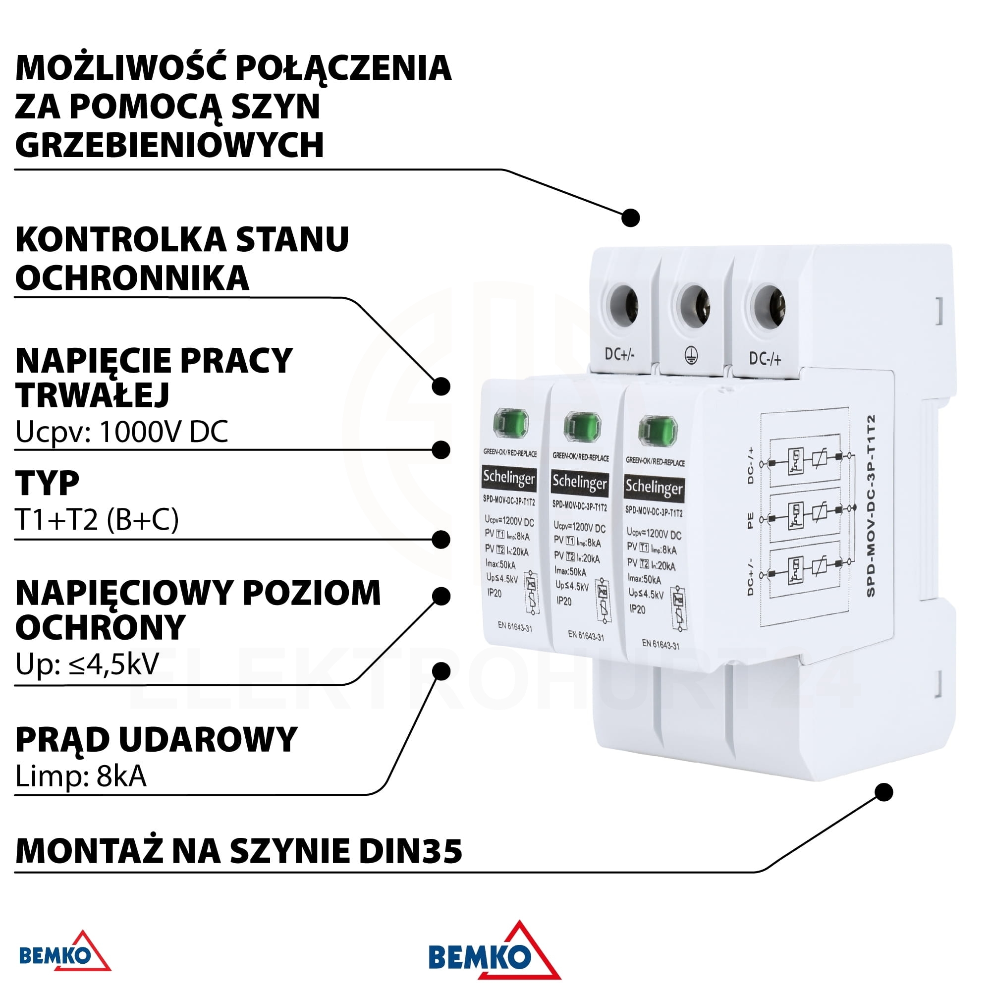 OGRANICZNIK PRZEPIĘĆ 3P 8kA DC 1200V KLASY T1T2 SCHELINGER