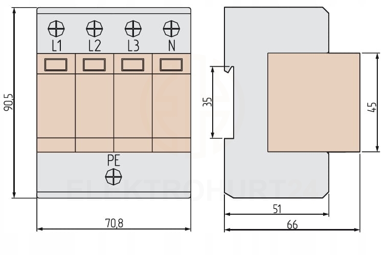 - Przekrój przewodów: drut 6-35mm2 , linka 4-25mm2