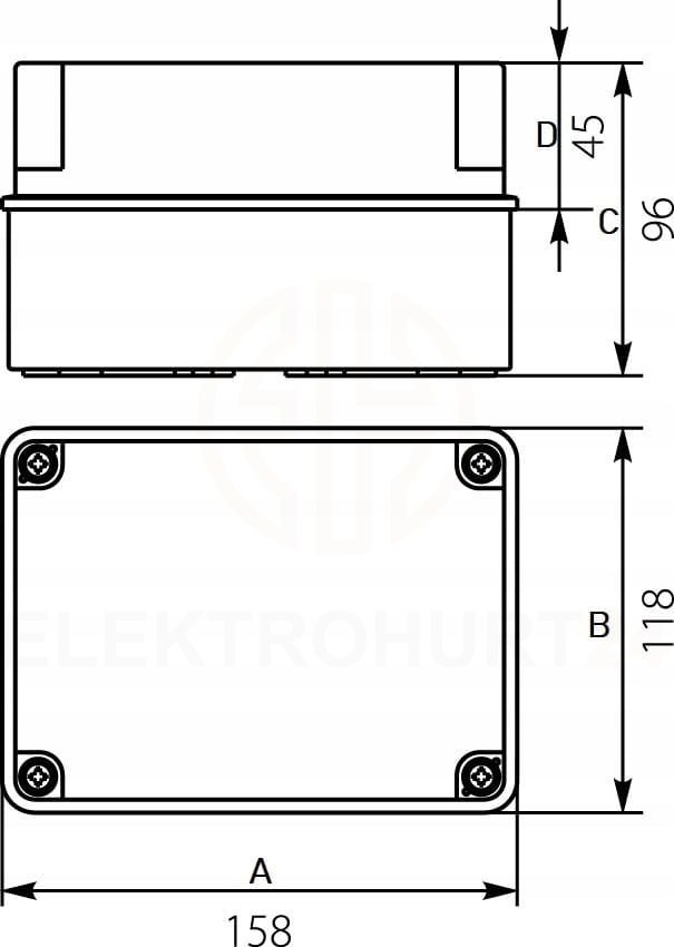 PUSZKA OBUDOWA HERMETYCZNA NATYNKOWA 118x158x96mm IP65 SZARA