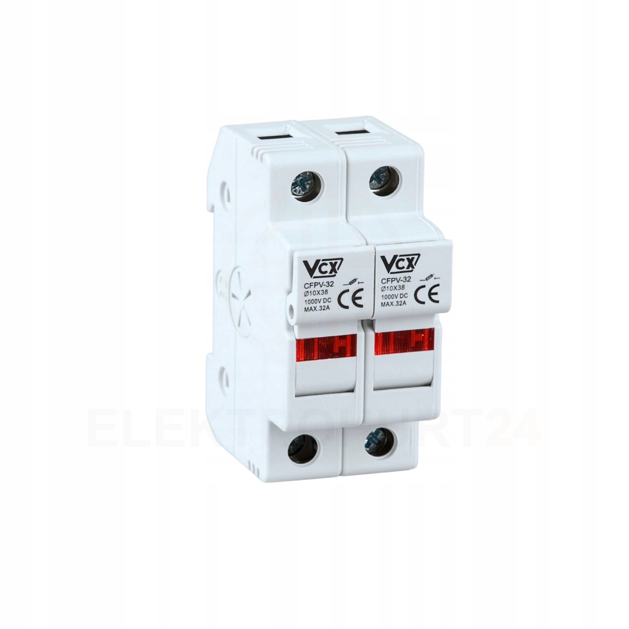 - Podstawa bezpiecznikowa 10×38: max 32A 1000V DC