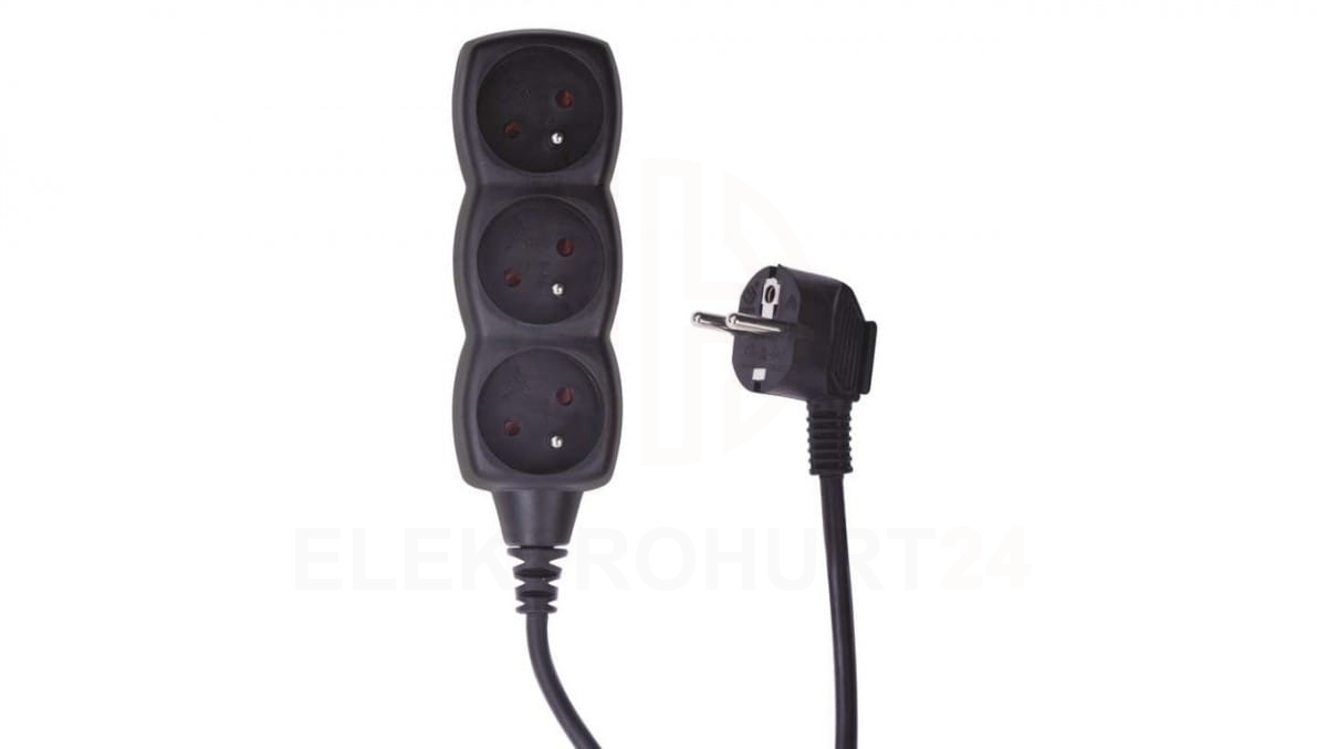 Przedłużacz 3-gniazda z/u 1,5m /H05VV-F 3G1/ czarny PC0311