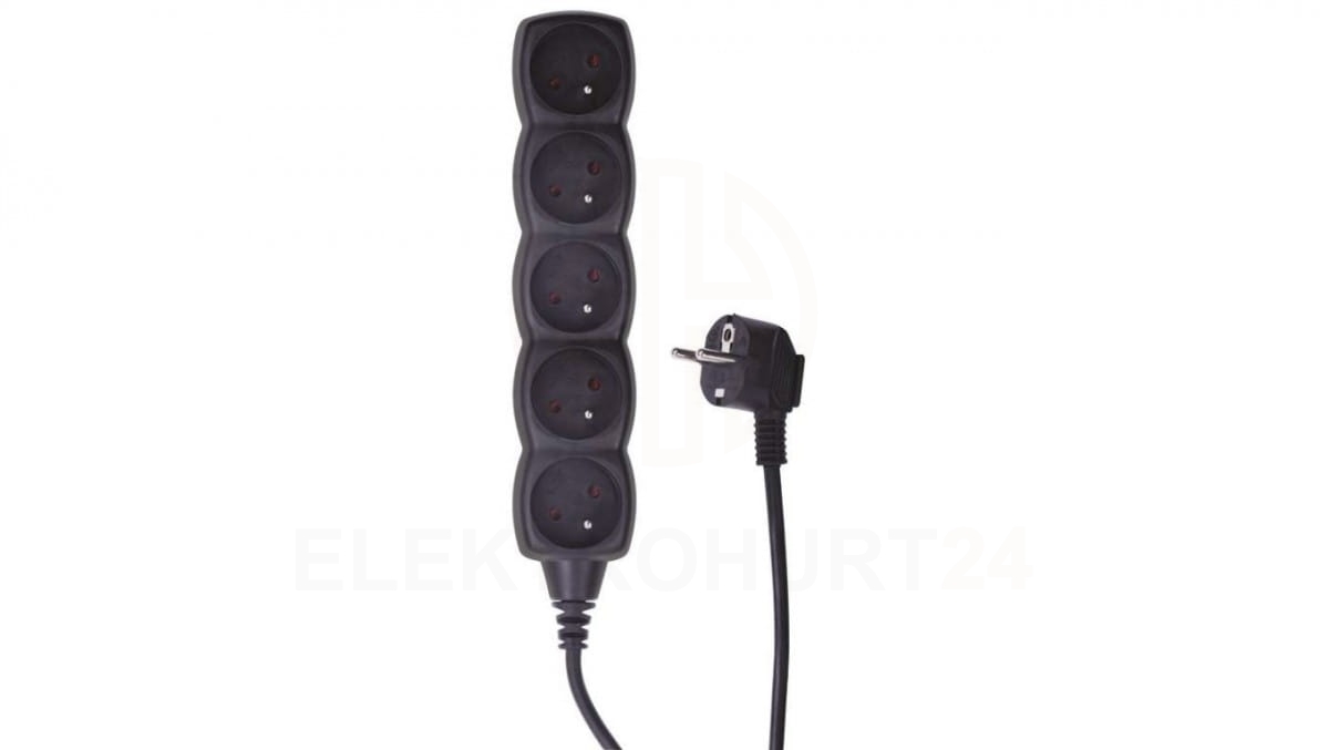 Przedłużacz 5-gniazd z/u 3m /H05VV-F 3G1/ czarny PC0513