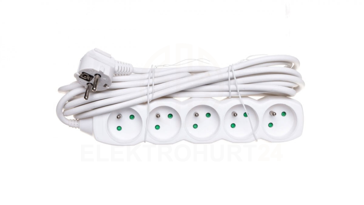 Przedłużacz 5-gniazd z/u 5m /H05VV-F 3G1/ biały P0515