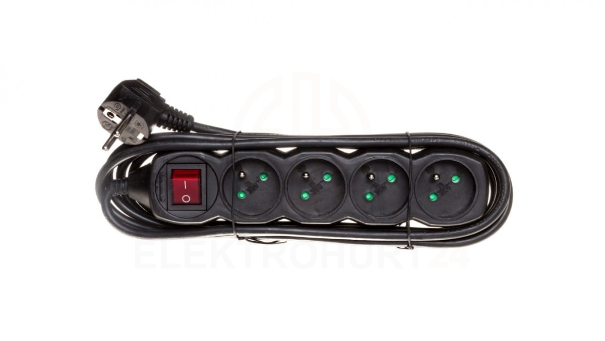 Przedłużacz z wyłącznikiem 4-gniazda z/u 3m /H05VV-F 3G1/ czarny PC1413