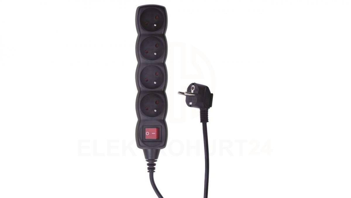 Przedłużacz z wyłącznikiem 4-gniazda z/u 5m /H05VV-F 3G1/ czarny PC1415