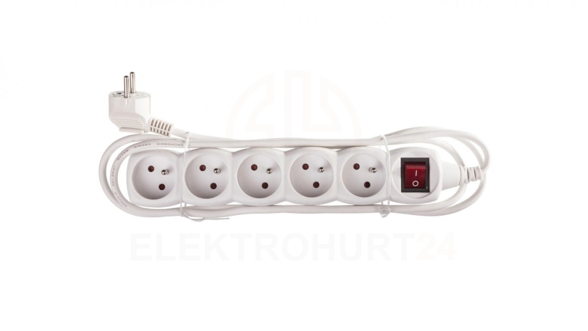 Przedłużacz z wyłącznikiem 5-gniazd z/u 2m /H05VV-F 3G1/ biały P1512