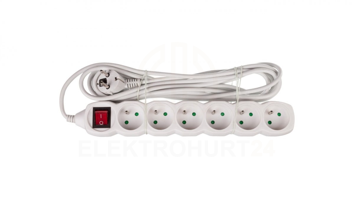 Przedłużacz z wyłącznikiem 6-gniazd z/u 5m /H05VV-F 3G1/ biały P1615
