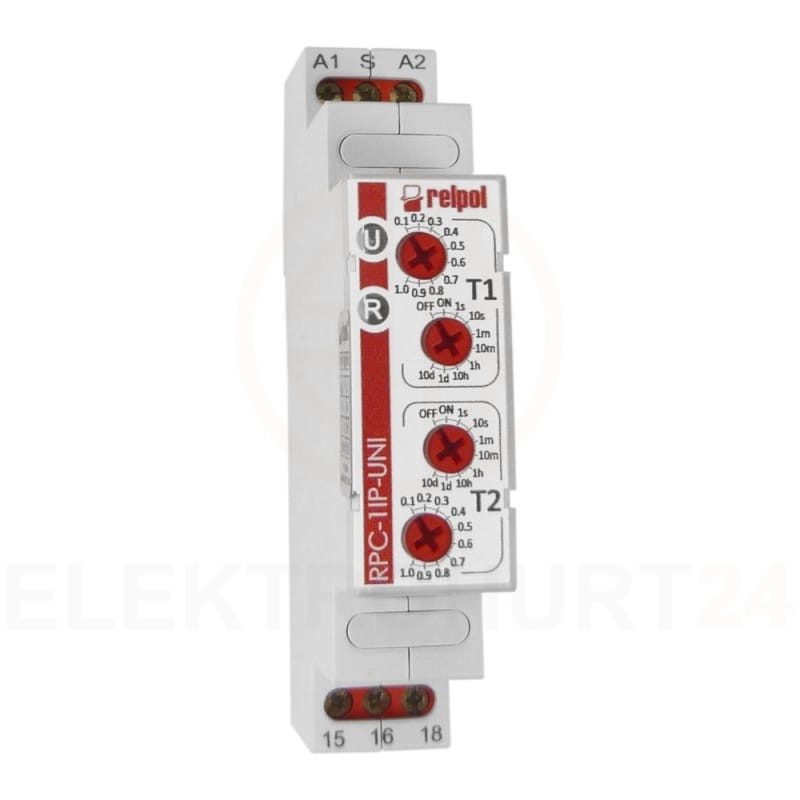 Przekaźnik czasowy 1P 1sek-10dni 12-240V AC/DC 50/60 Hz praca cykliczna RPC-1IP-UNI 863189