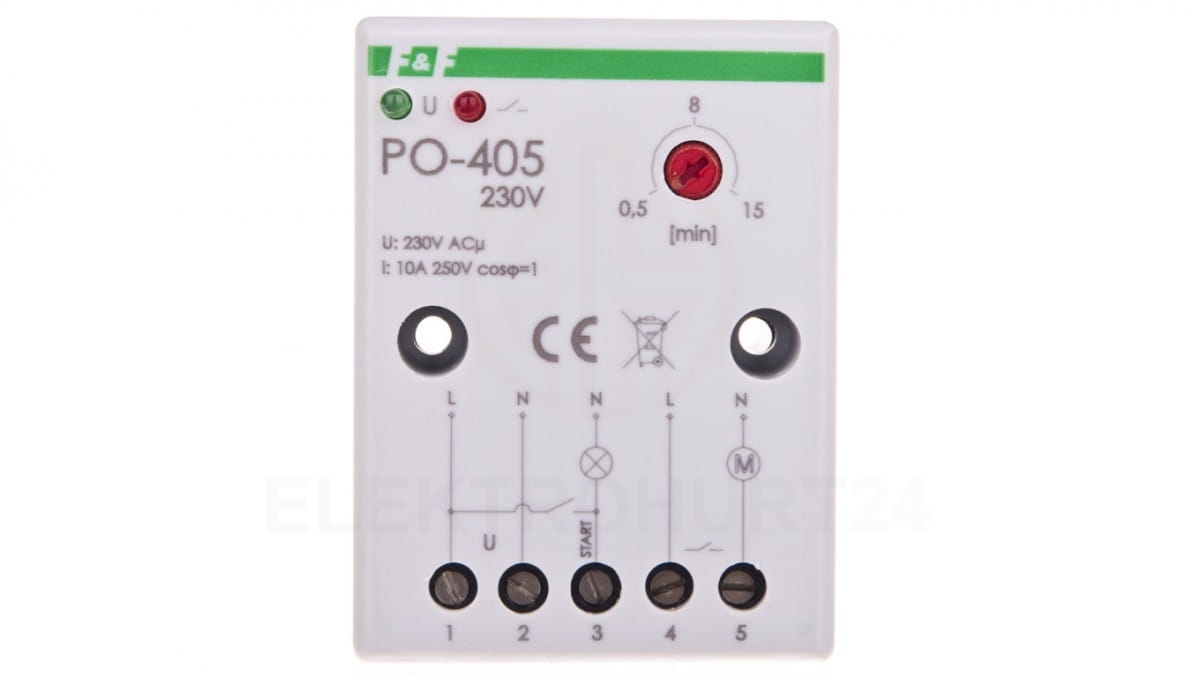 Przekaźnik czasowy 1Z 10A 1-15min 230V AC opóźnione odpadanie PO-405 230V