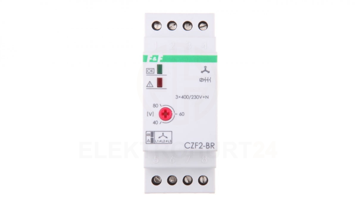 Przekaźnik zaniku i asymetrii faz z kontrolą styków stycznika 10A 1Z 4sek 40-80V CZF2-BR