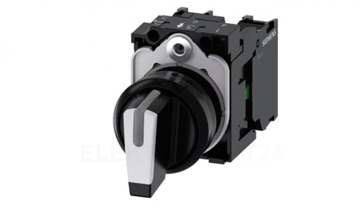 Przełącznik obrotowy 22mm okrągły tworzywo sztuczne krótki I-O-II bez samopow z uchwytem 1NO 1NO śrubowe 3SU1100-2BL60-1NA0