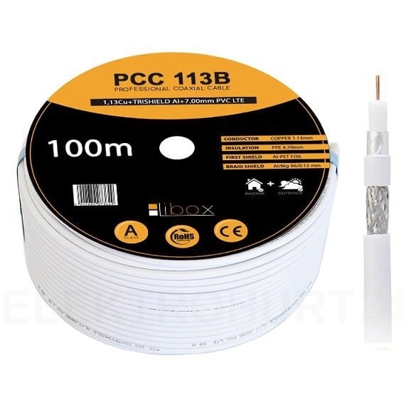 Przewód koncentryczny SAT 1,13/4,7 LIBOX reakcja na ogień Eca PCC113B /100m/
