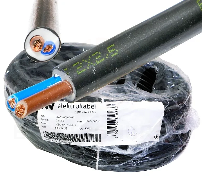 Przewód warsztatowy H05VV-F (OWY) 2x2,5 czarny /50m/