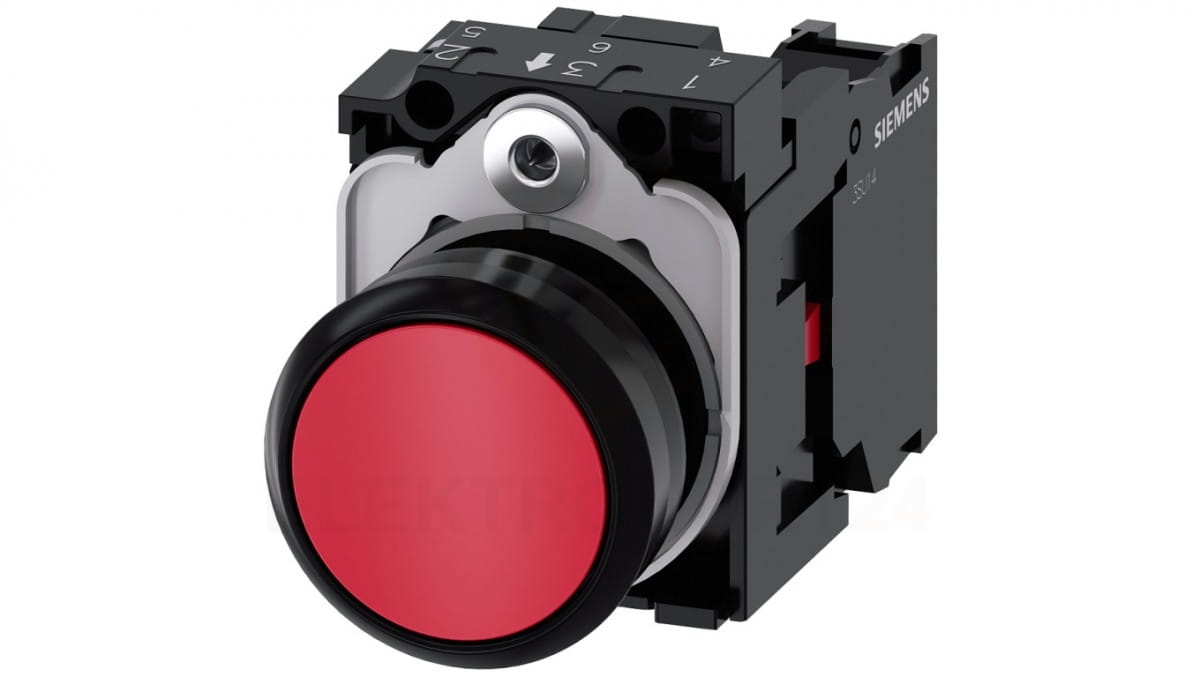 Przycisk kompletny czerwony płaski 22 mm tworzywo z samopowrotem 1NC przyłącze śrubowe SIRIUS ACT 3SU1100-0AB20-1CA0