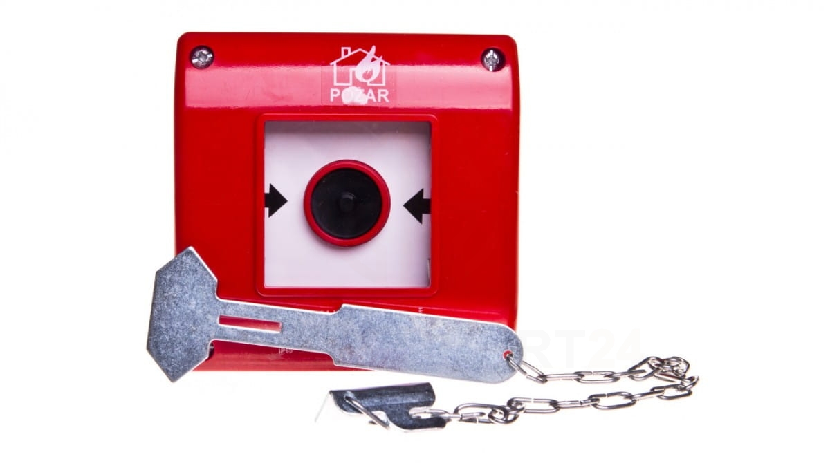 Przycisk przeciwpożarowy natynkowy 1Z czerwony z młotkiem OP1-W01-A\10-M