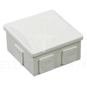 Puszka natynkowa hermetyczna o indeksie S-BOX036B, w kolorze białym o wymiarach 8x8x4 cm, nie posiada dławików.