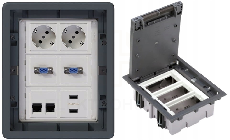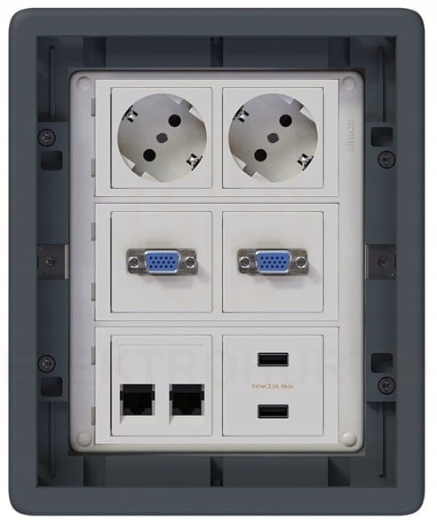 Puszka podłogowa Floorbox 3-modułowa RJ-45 VGA USB Kontakt-Simon 6 gniazd