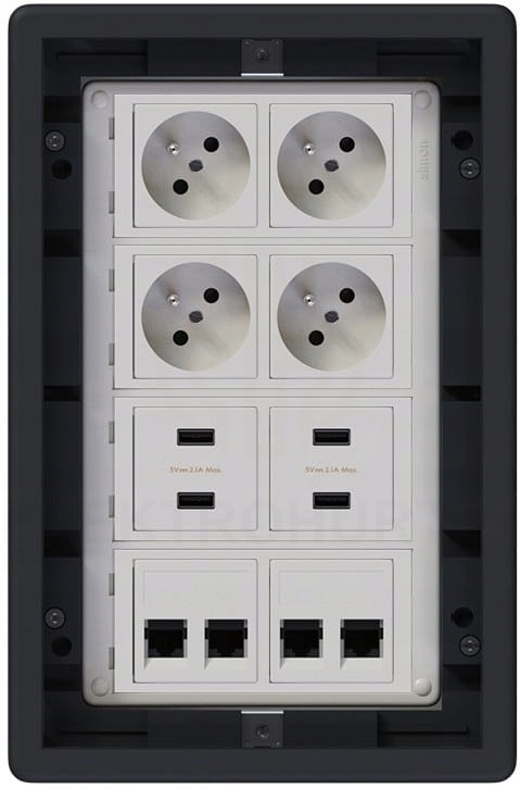 - Pojemność na 8 modułów K45, dodatkowo wspiera adaptację 4 modułów CIMA – idealna do rozbudowanej instalacji multimedialnej i elektrycznej