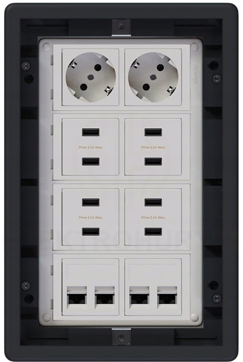 - Pojemność na 8 modułów K45, dodatkowo wspiera adaptację 4 modułów CIMA – idealna do rozbudowanej instalacji multimedialnej i elektrycznej