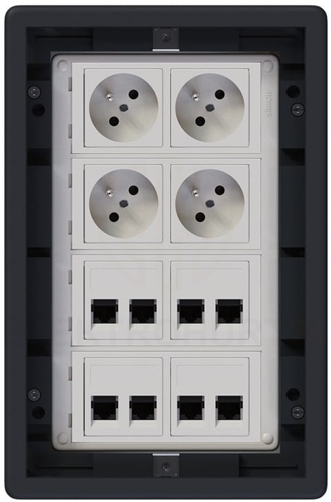 - Pojemność na 8 modułów K45, dodatkowo wspiera adaptację 4 modułów CIMA – idealna do rozbudowanej instalacji multimedialnej i elektrycznej
