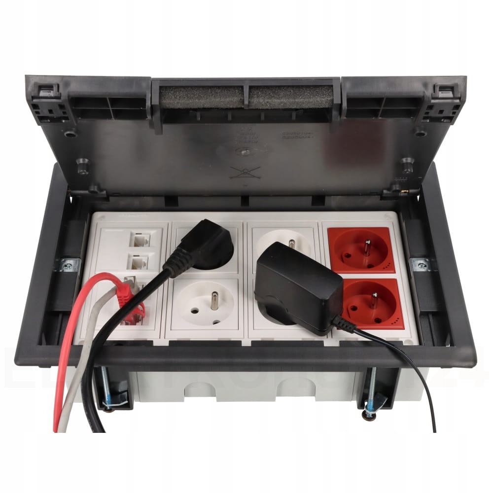 - W przypadku wyższych wtyków (np. niektórych zasilaczy USB, HDMI, VGA) zalecamy korzystanie z puszki przy otwartym wieczku, co nie wpływa na funkcjonalność.