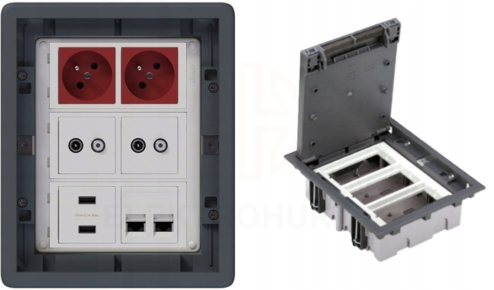 Puszka podłogowa Kontakt Simon 3-modułowa gniazdka USB TV-SAT Keystone