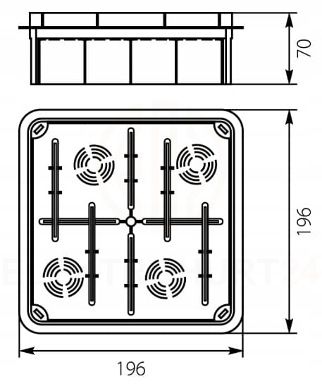 Puszka podtynkowa z białą pokrywą 196x196x70 IP40