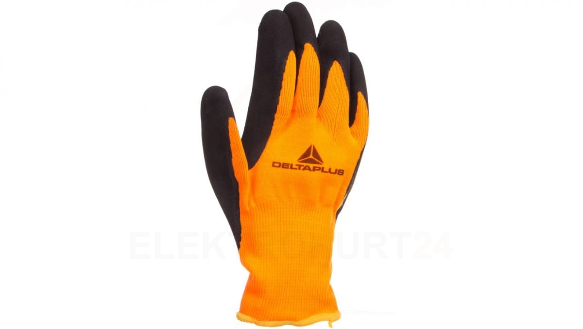 Rękawice dziane z poliestru fluorescencyjnego strona chwytna z pianki lateksowej czarno-pomarańczowe rozmiar 7 APOLLON VV733OR07