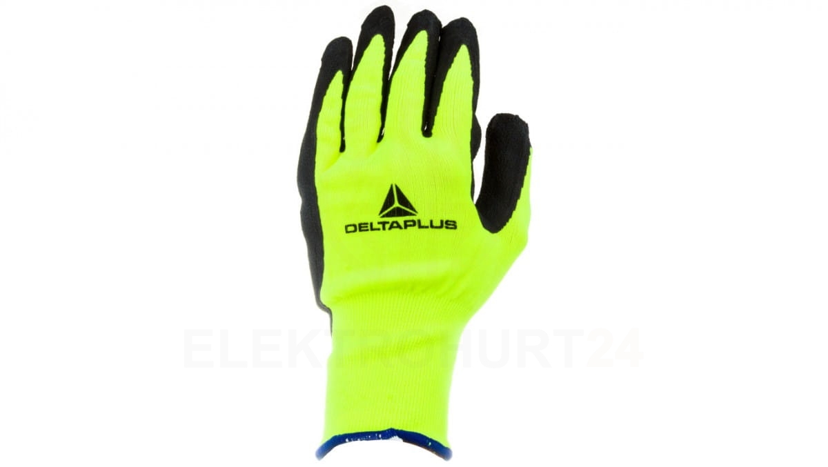 Rękawice dziane z poliestru fluorescencyjnego strona chwytna z pianki lateksowej czarno- żółte rozmiar 10 APOLLON VV73310