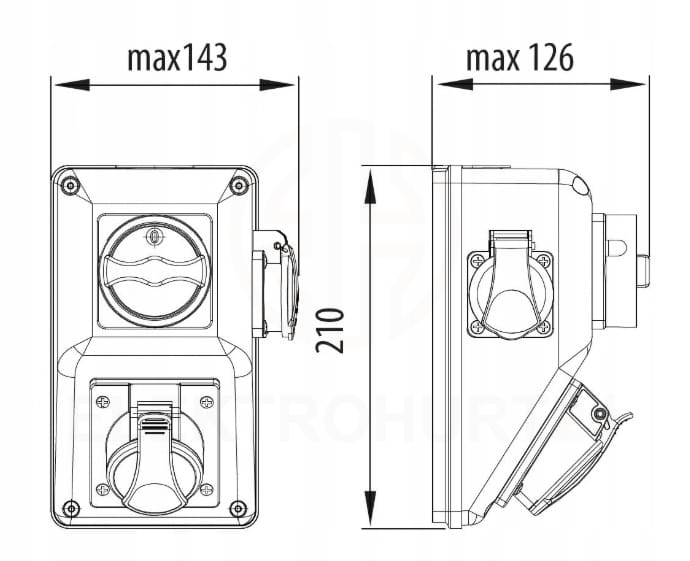 • Gniazdo wtykowe CEE 32A: 1x32A 5p 400V