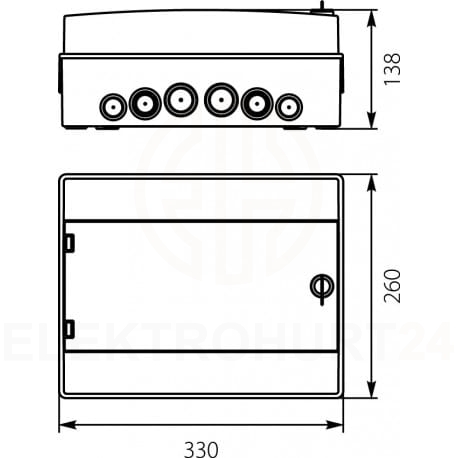 Rozdzielnica hermetyczna modułowa (500V AC ,1000V DC) 1x12 natynkowa IP65 RH-12/B 36.11