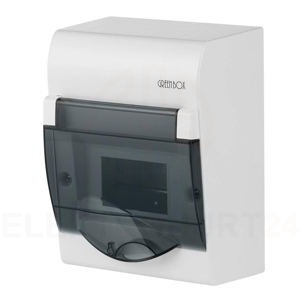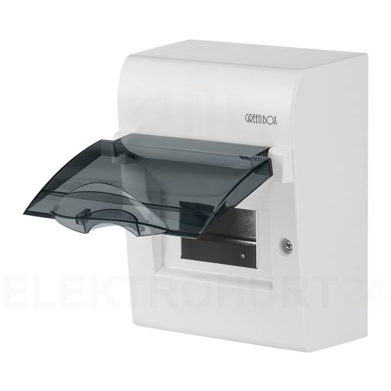 Rozdzielnica modułowa 1x6 natynkowa GREEN BOX RN 1/6 drzwi transparentne dymne N+PE IP4 2351-01
