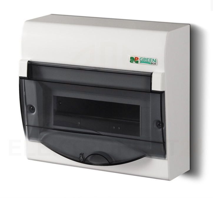 Rozdzielnica modułowa 1x8+2 n/t GREEN BOX RN 1/8+2 drzwi transparentne dymne N+PE IP40 2352-01