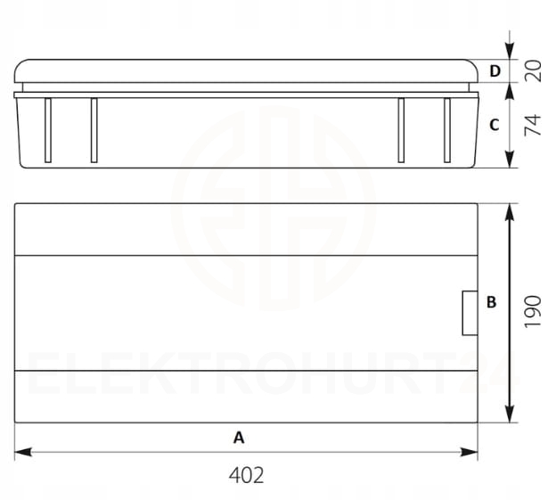 Wymiary (wys.×szer.×głęb.): 190x402x74 mm