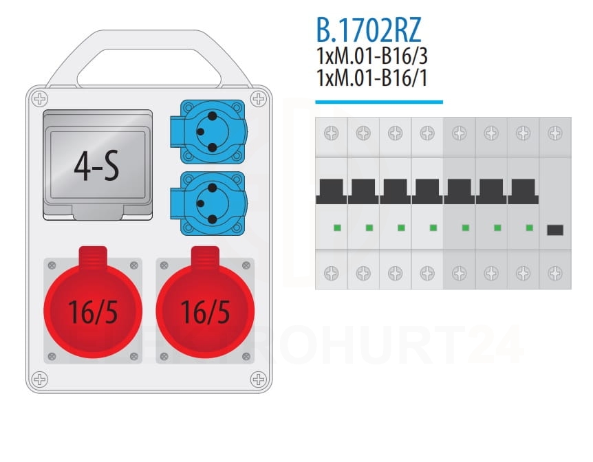 Rozdzielnica 2x250V 2x16A/5p 4S - B.1702RZ