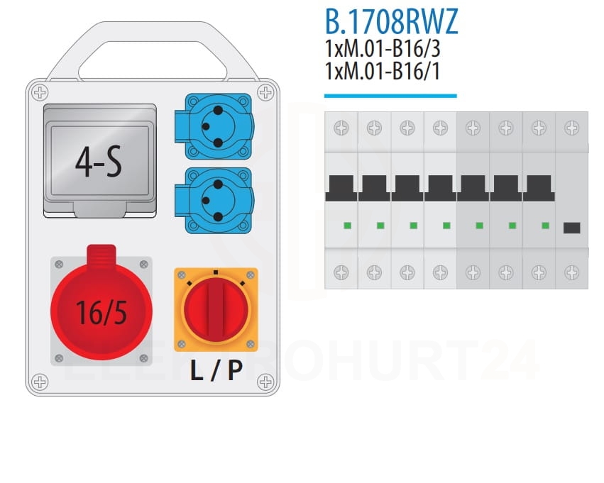 Rozdzielnica 2x250V 1x16A/5p L-0-P 4S - B.1708RWZ