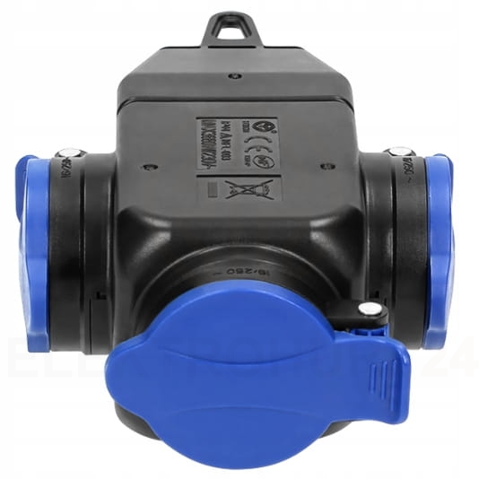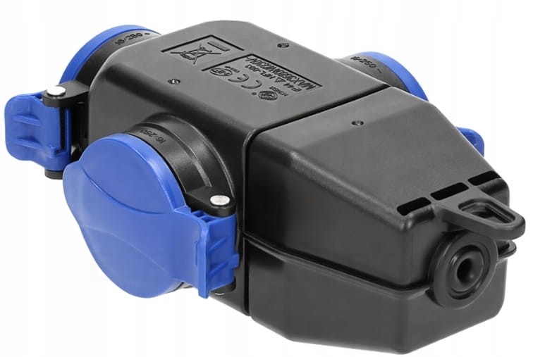 - Stopień ochrony gniazd: gumowe klapki sprężynowe