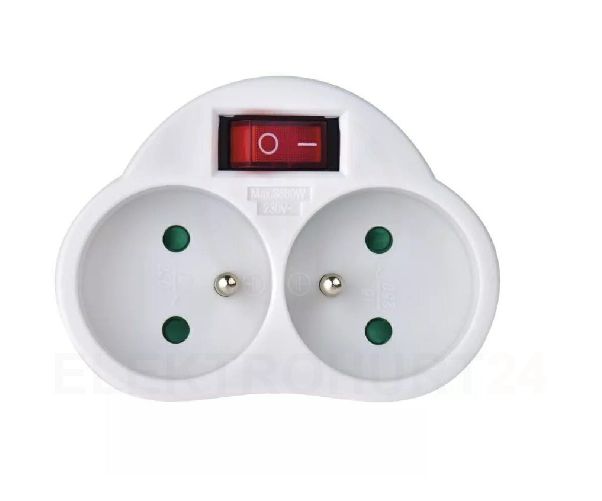 Rozgałęźnik wtyczkowy 2-gniazda z/u bia