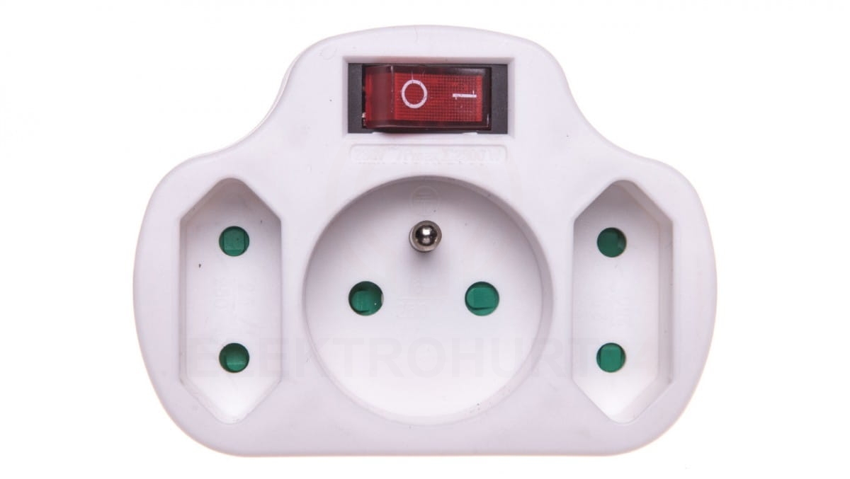 Rozgałęźnik wtyczkowy z wyłącznikiem 1-gniazdo z/u + 2x Euro biały P0029