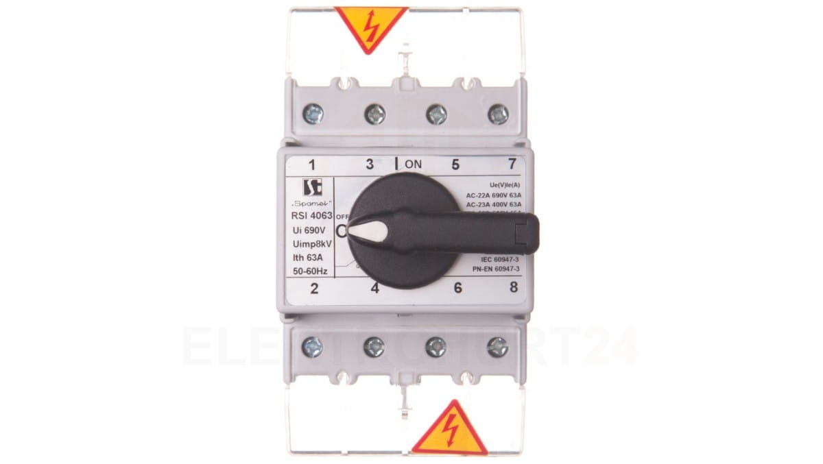 Rozłącznik izolacyjny 4P 63A z pokrętłem na rozłączniku czarnym RSI-4063W02
