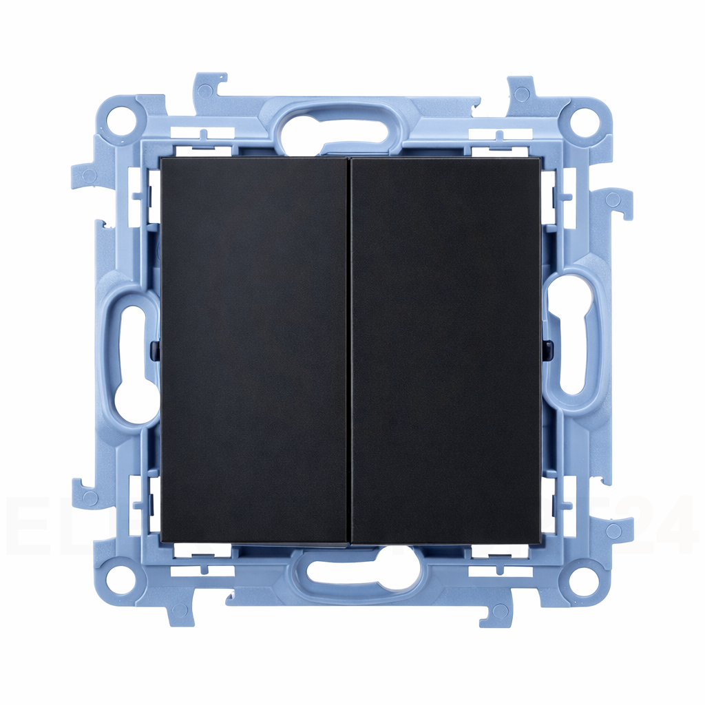 Producent: Kontakt-Simon | Seria: Simon 10 | Typ: Łącznik świecznikowy (podwójny) | Kolor: czarny mat | Montaż: podtynkowy